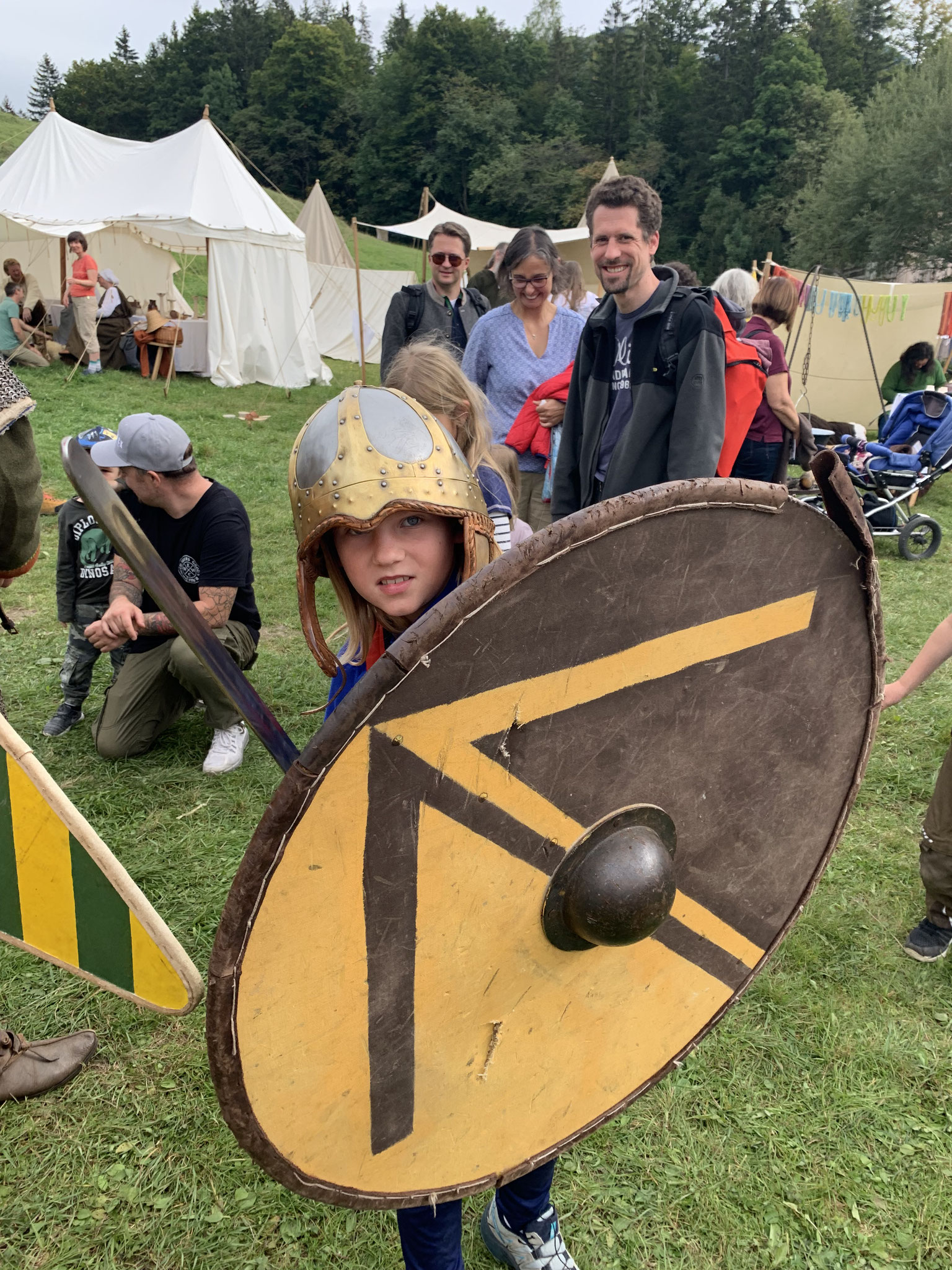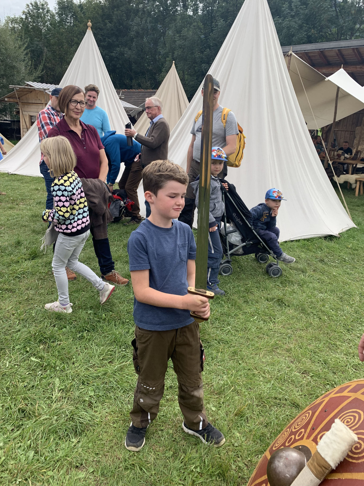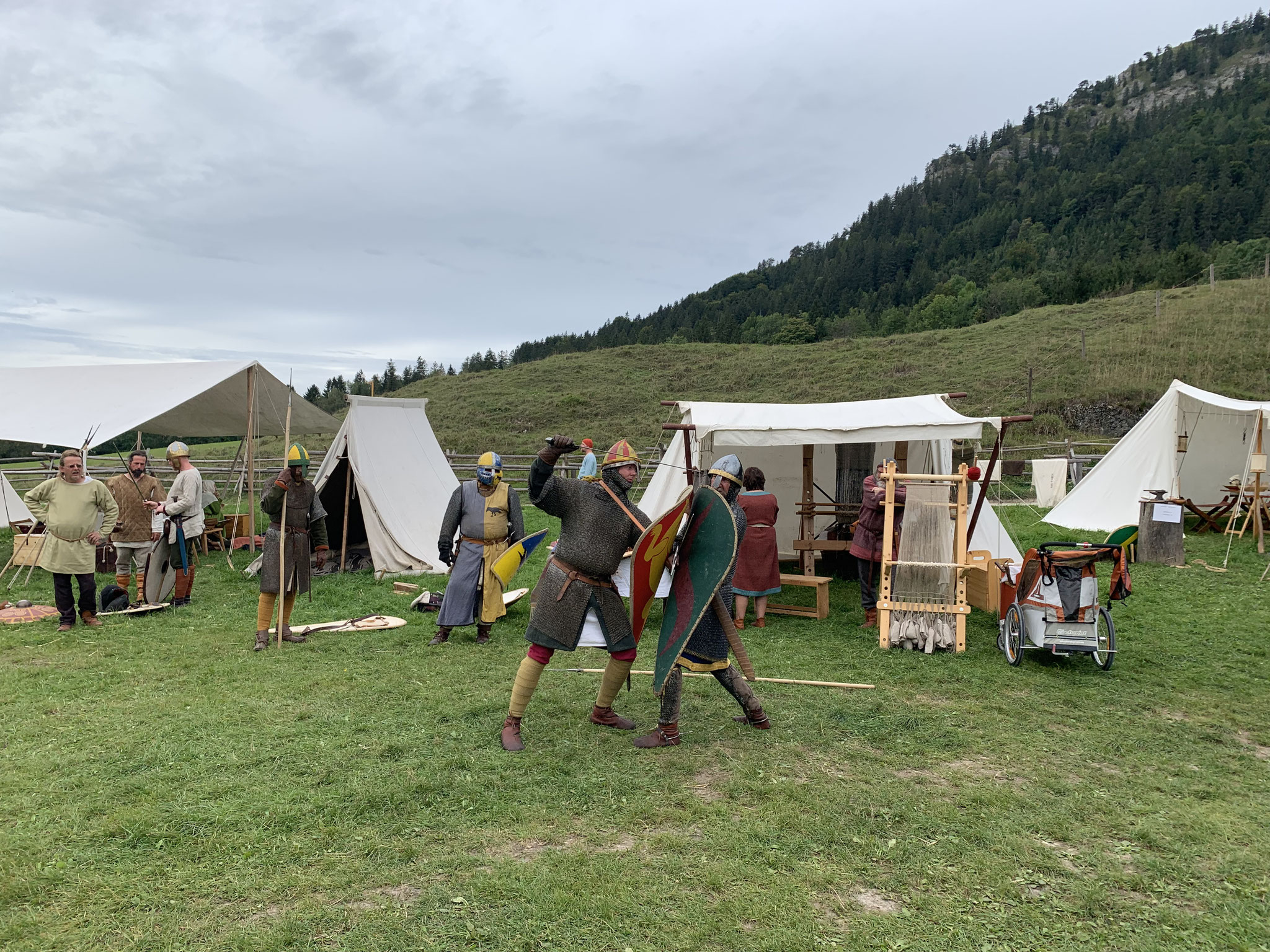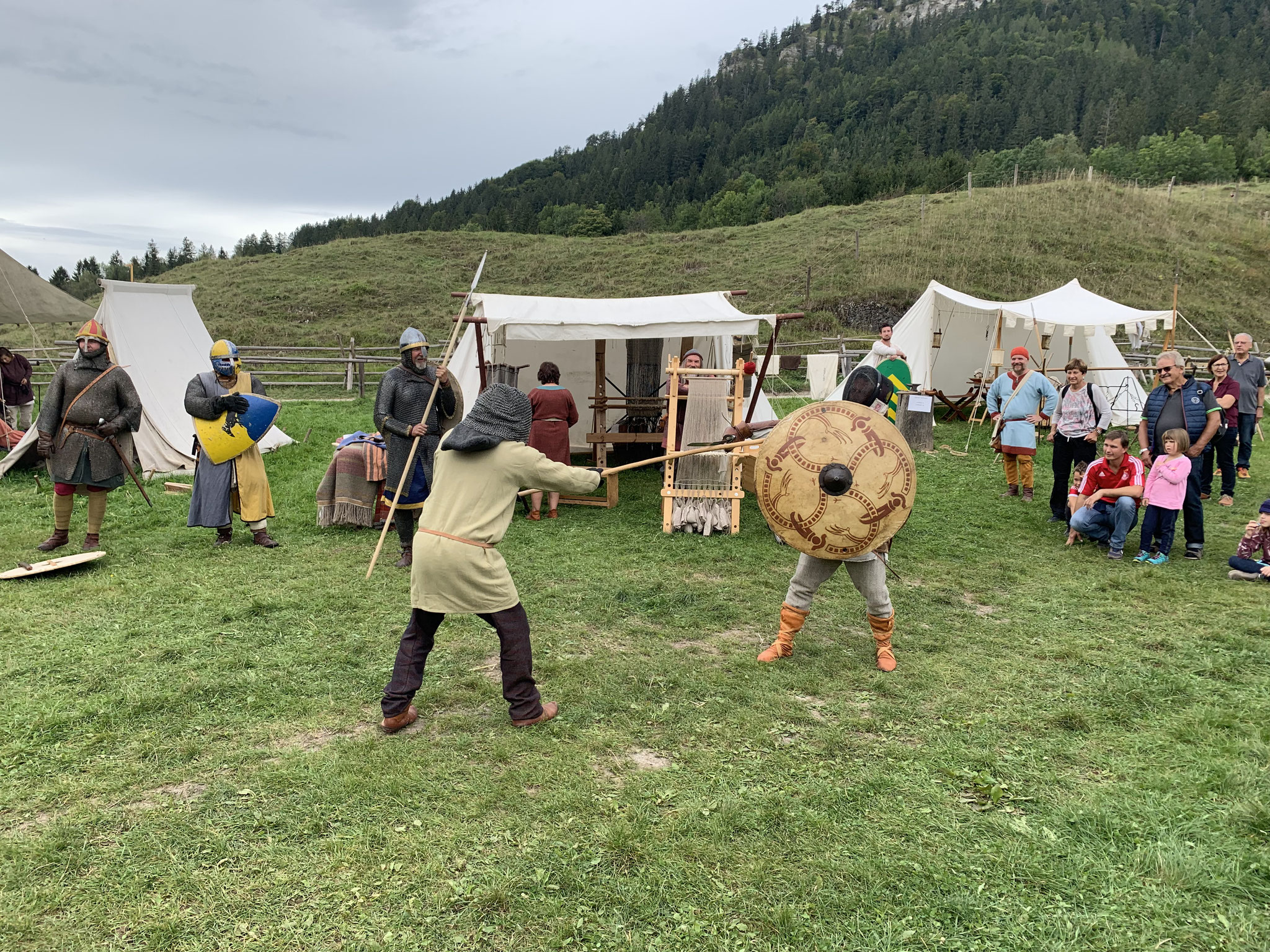 Auf der Wiese unter dem Dorf lagerten noch Ritter und anderes Gesindel aus dem Mittelalter, die uns ihr Handwerk und ihre Kampfeskunst nahe bringen wollten. Allerdings mahnte der Fahrplan der BOB und wir mussten uns verabschieden und stiegen wieder in den vollbesetzten Zug Richtung München ein. Vielen Dank an unseren Tourenwart Paul Wert für die Organisation. Wer mehr über das sehenswerte Dorf vom Markus Wasmeier erfahren mag, schaut auf seine Webseite oder einfach mal vorbei.