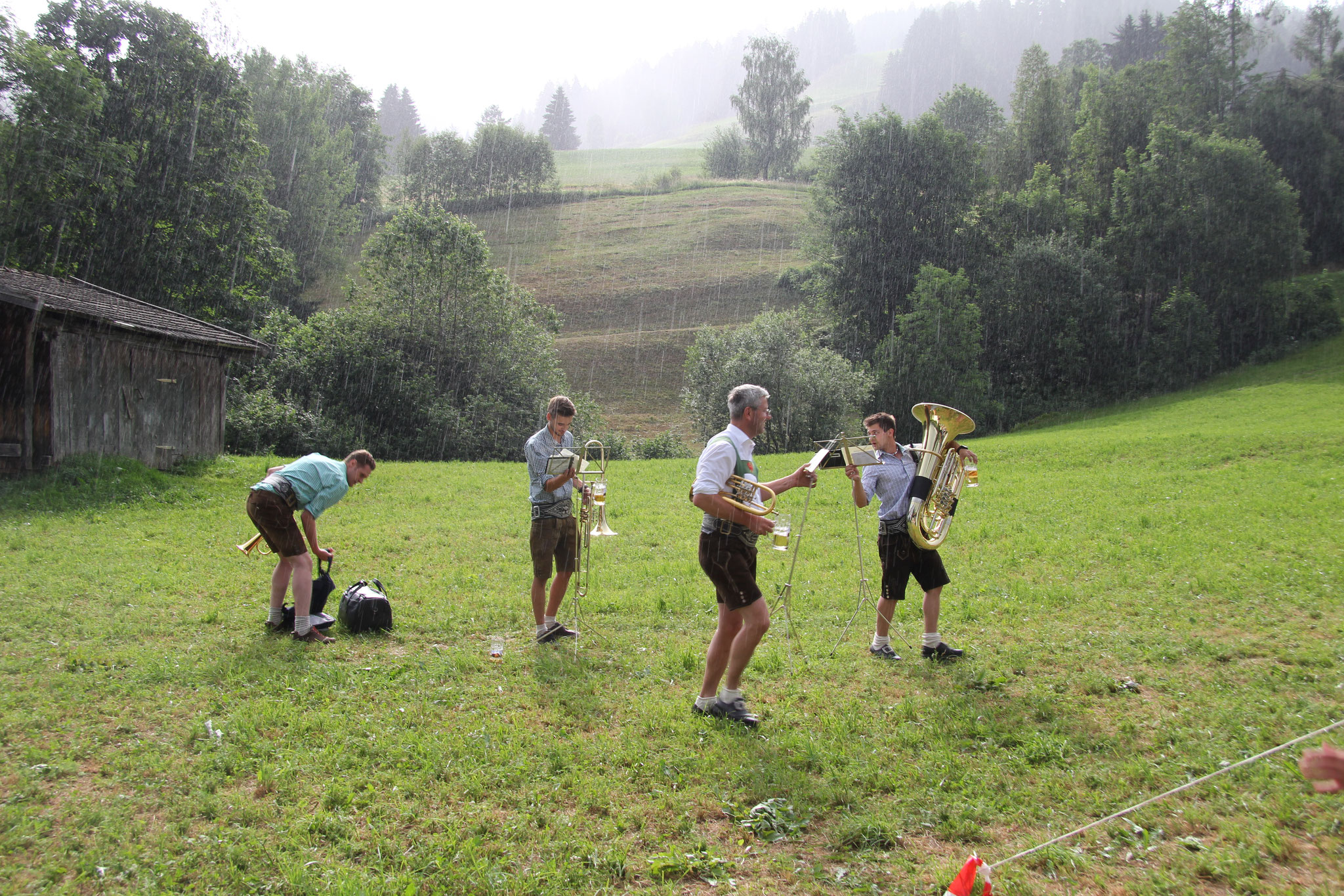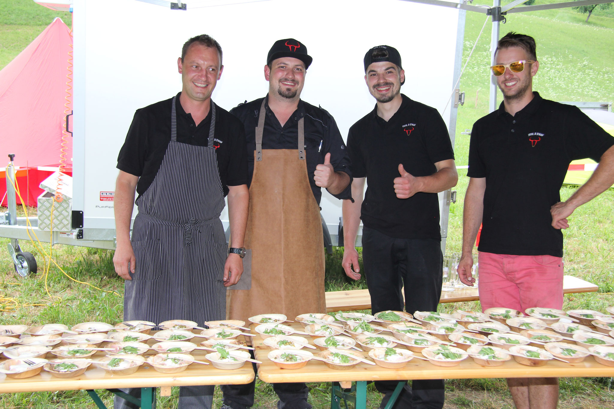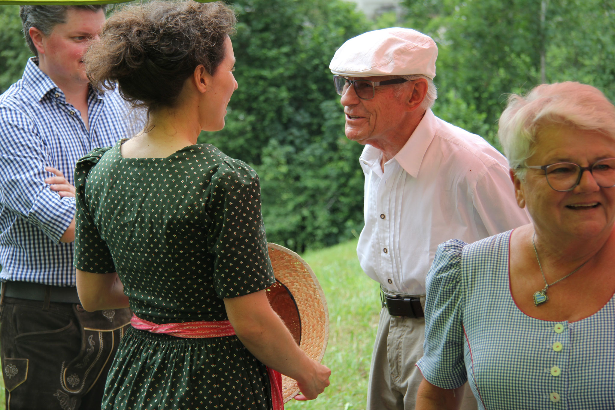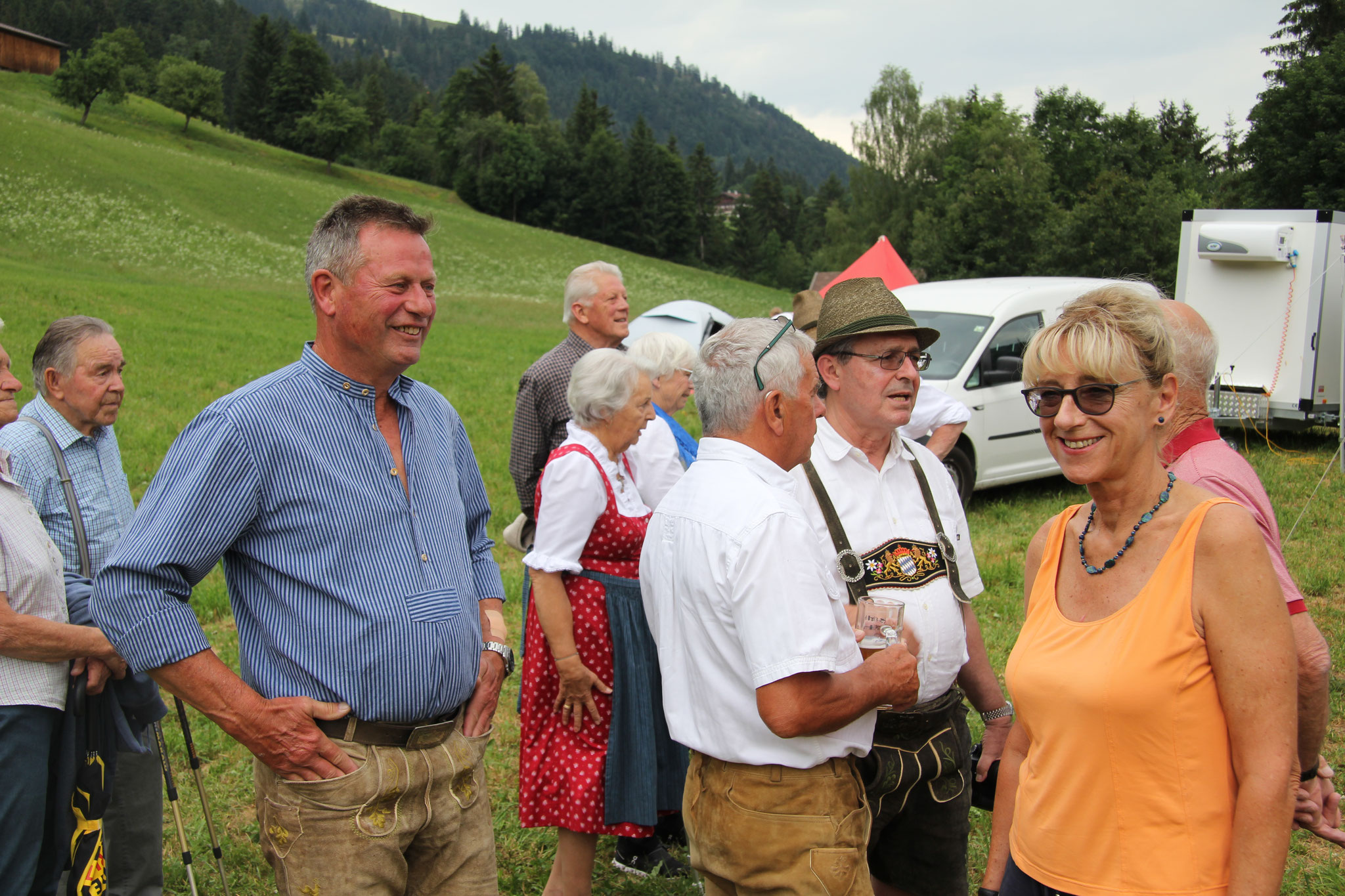 Die Organisation hatte im Vorfeld wahrhaft ganze Arbeit geleistet und so konnten wir bei Sonne und manchmal auch etwas Regen gut behütet das ausgezeichnete Essen der Kirchberger Metzgerei Trixl & Straif und die erfrischenden Getränke genießen. Die Blasmusik begleitete uns bis in den Abend hinein durch das Programm und verabschiedete sich dann schließlich, nicht ohne einen herzlich hopfigen Abschiedsgruß unserer Damen.