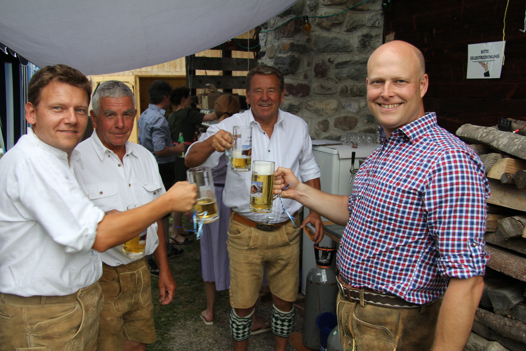Der Fest-Ausschuss, unter der Leitung unseres 2. Vorstandes Rudi Schmalreck, hatte bereits Monate vorher mit der Planung begonnen und so konnte dann am Samstag, den 6. Juli um Punkt 17:00 Uhr die Festivität beginnen. Zum Auftakt spielte die Aschauer Blasmusik auf und unser 1. Vorstand Andi Schmalreck beleuchtete, nachdem die Nachbarn und Ehrengäste herzlich begrüßt waren, in seiner Eröffnungsrede noch einmal kurz den historischen Entstehungsweg unserer CAS-Hütte.
