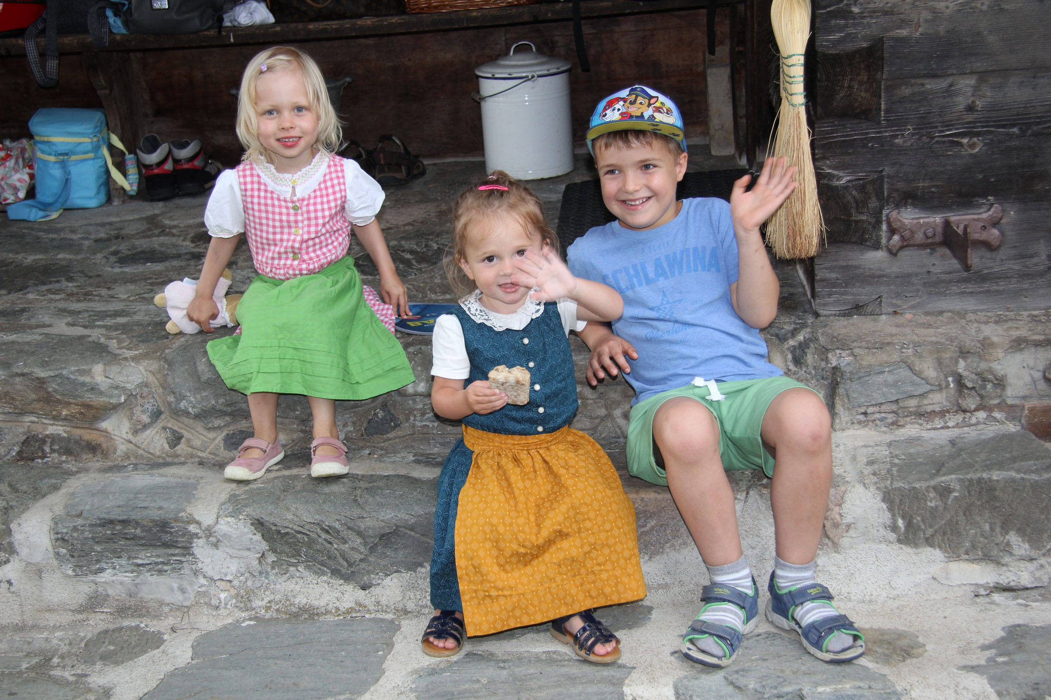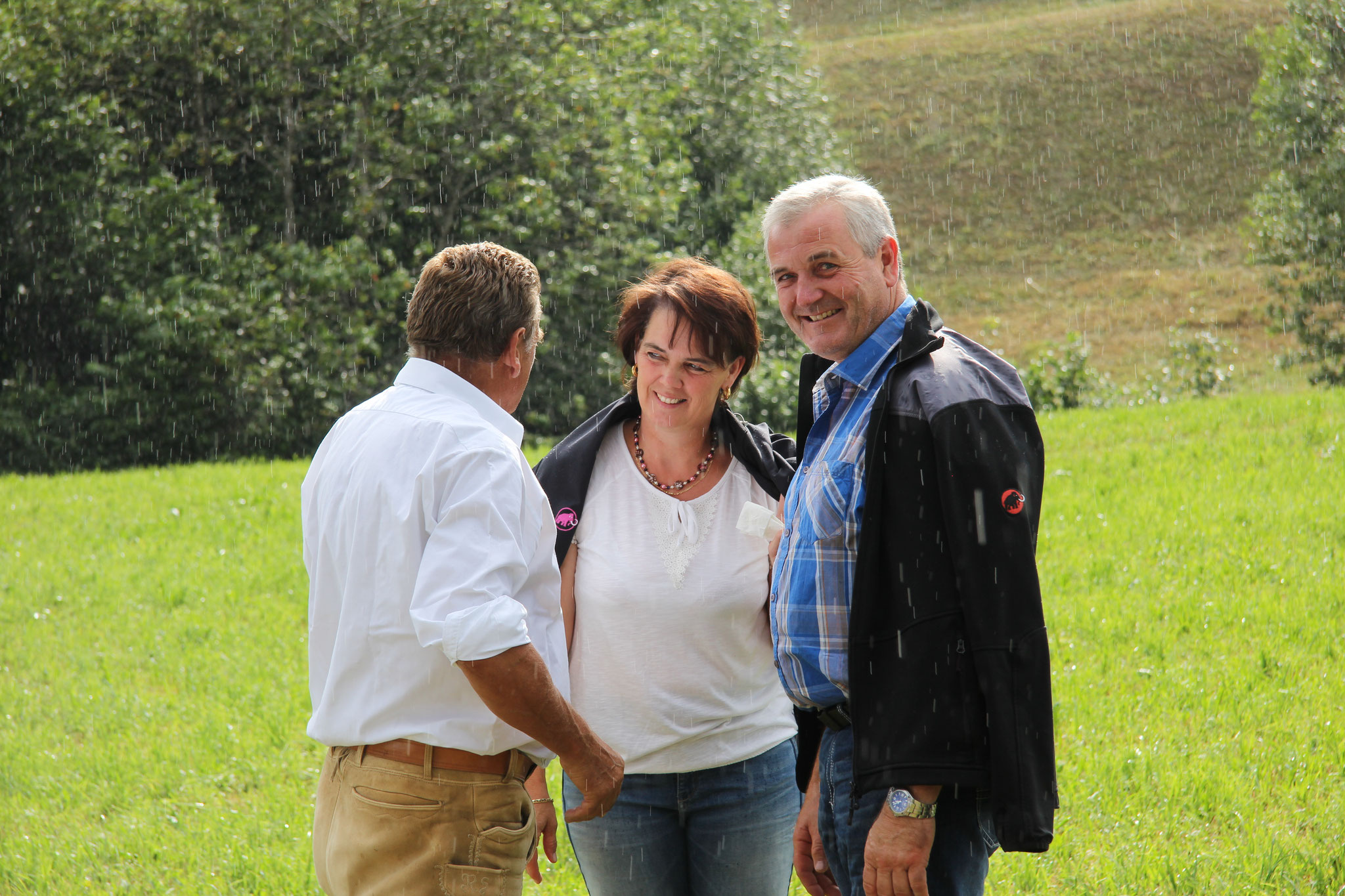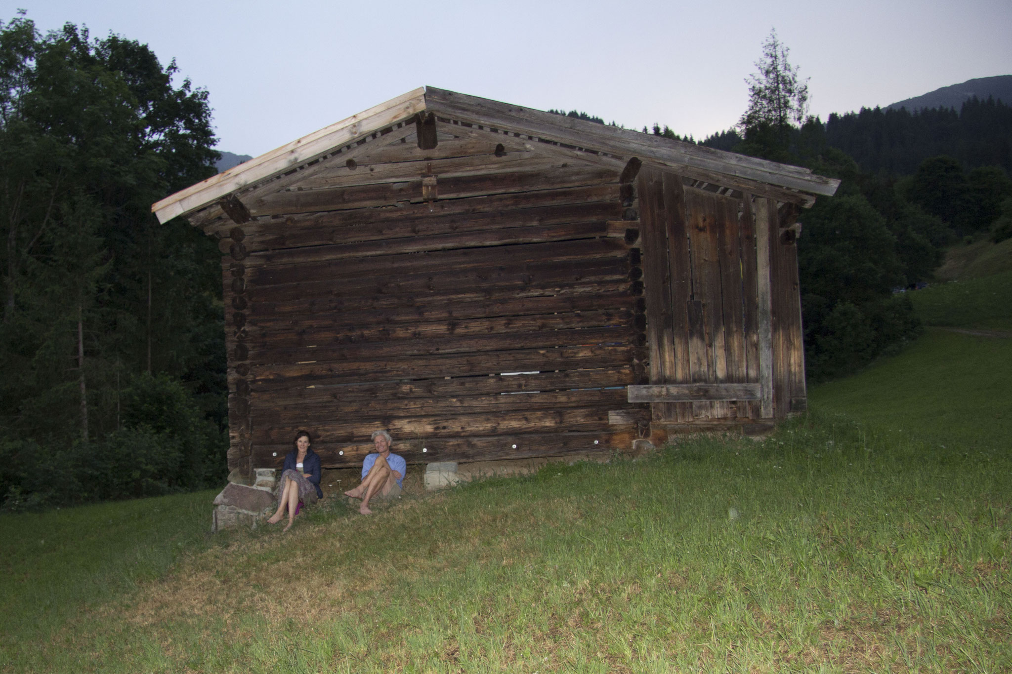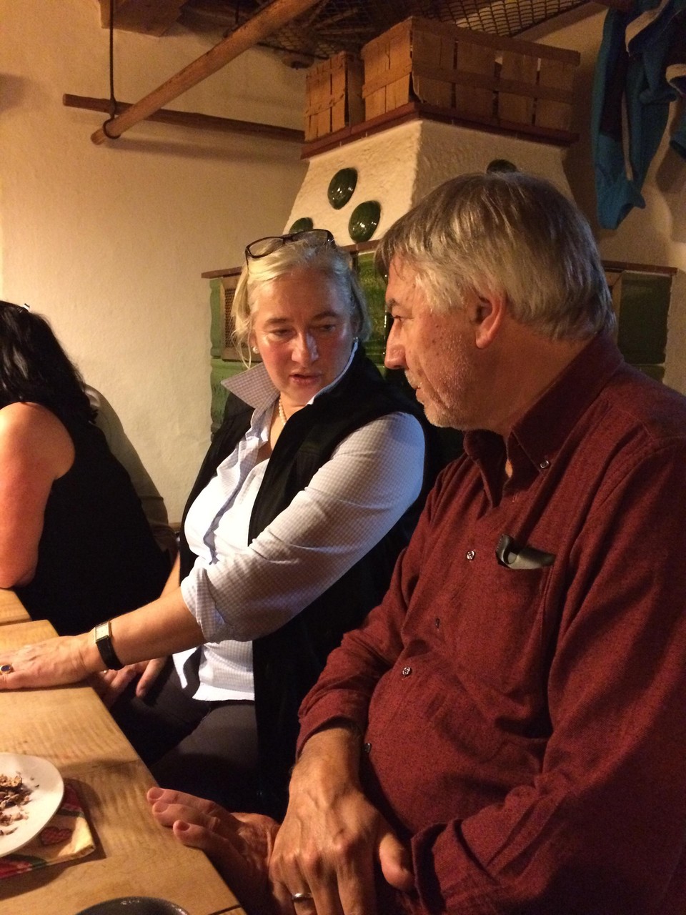 nachmittags in der Herbstsonne auf der Hüttenbank. Gegen 18 Uhr waren die meisten Gäste eingetroffen, ein paar Nachbarsbauern sind ebenfalls gekommen. Alle waren begeistert von der schönen