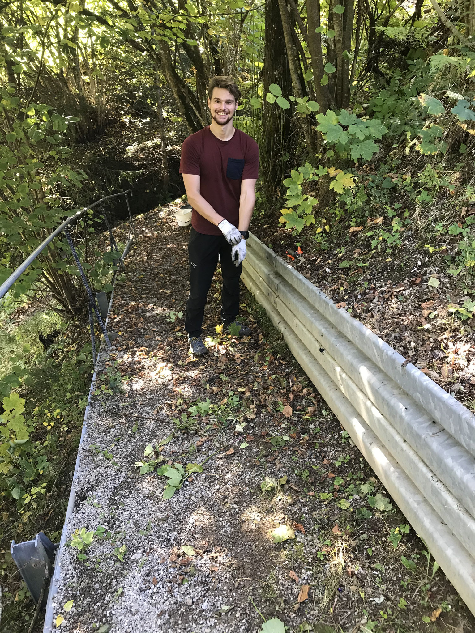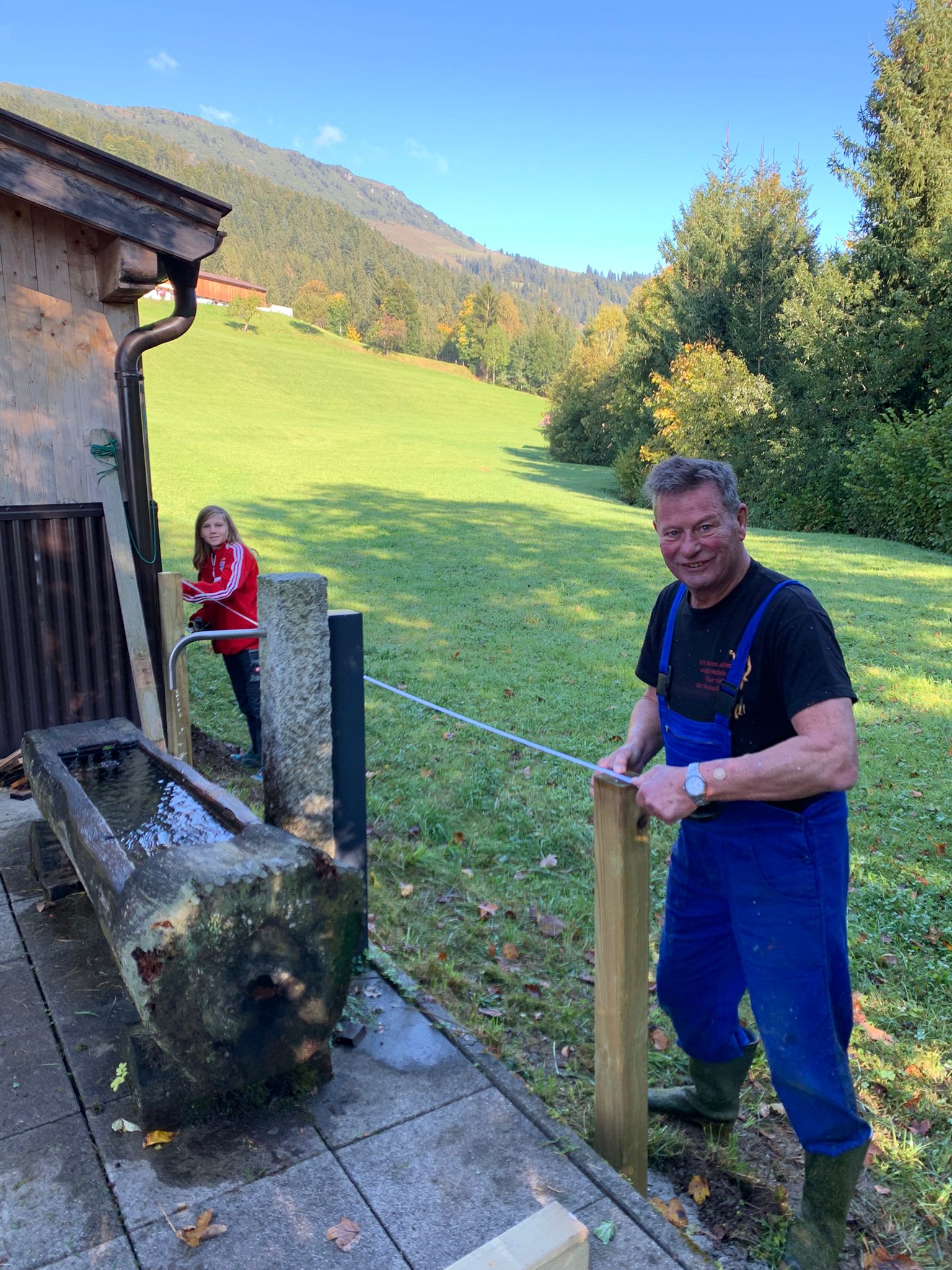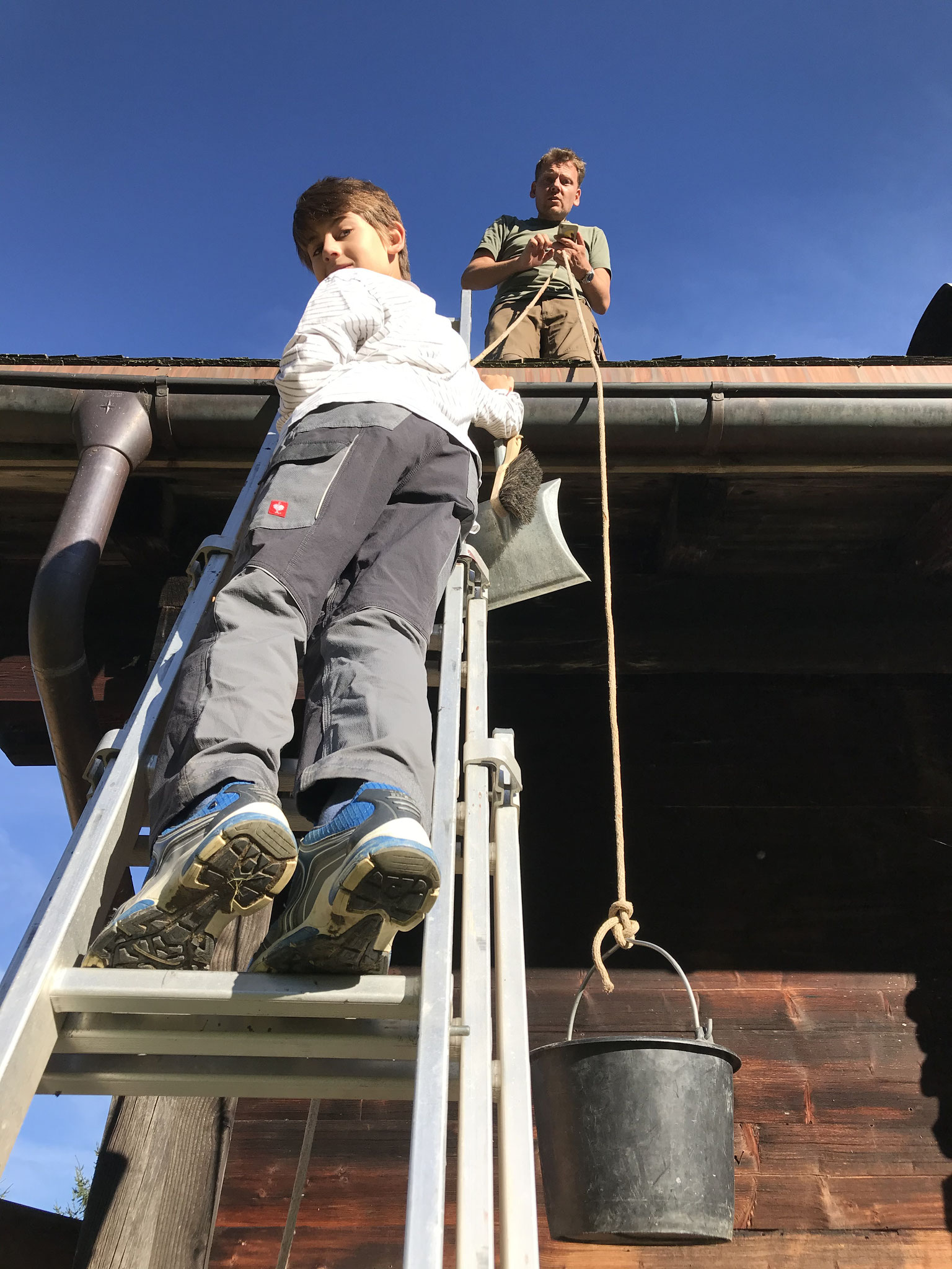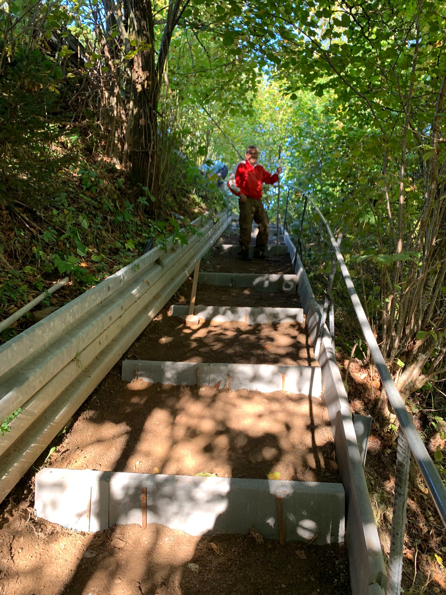 Bei strahlendem Sonnenschein machten wir uns ans Werk und waren froh, uns wieder um unsere liebgewonnene Hütte kümmern zu können, nachdem aufgrund der Coronapandemie das Hüttenstöbern und Hüttenbesuche im Jahr zuvor entfallen mussten. Unser Weg wurde nun durchgängig mit Treppenstufen befestigt.