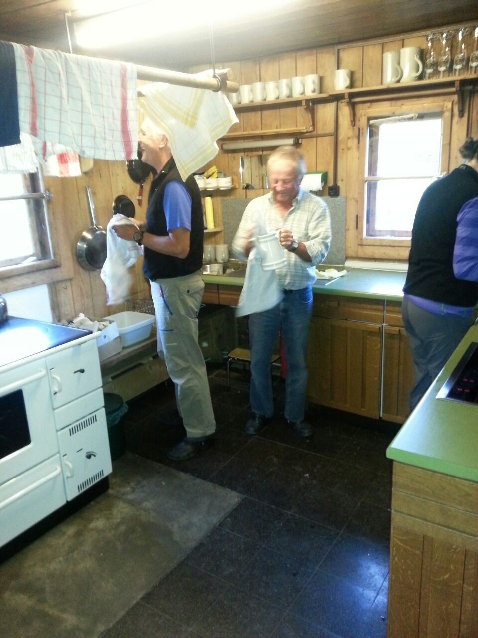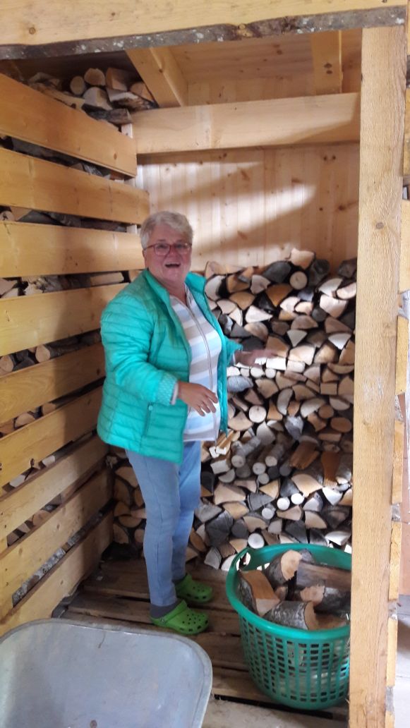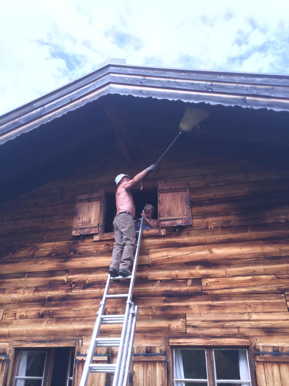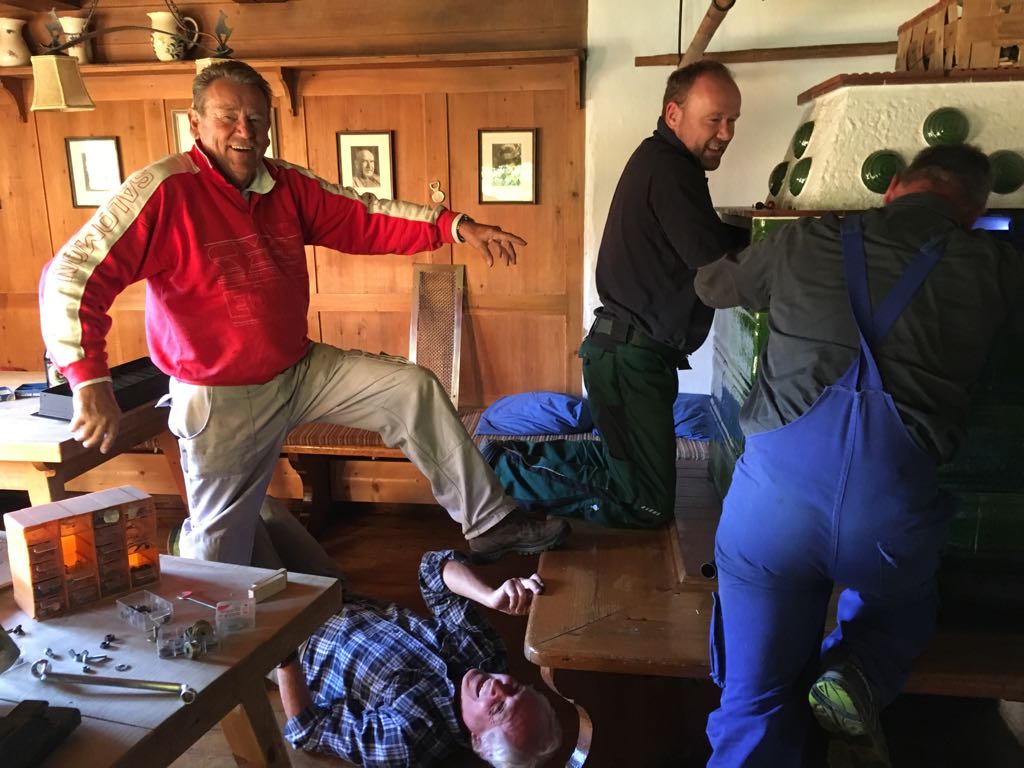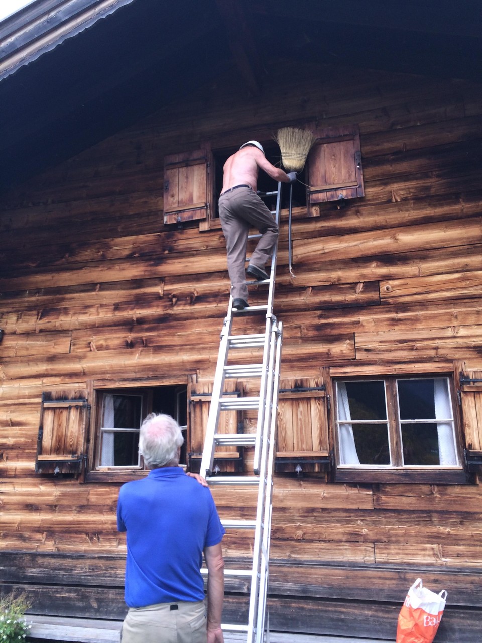 Unsere gute alte Kreissäge gab gleich zu Beginn ihren Geist auf und es musste schnell ein adäquater Ersatz gefunden werden. Hüttenwart, Vorstand und zwei weitere krisenerprobte Mitglieder begaben sich sofort in Richtung Tal um eine neue Säge zu besorgen. Keine zwei Stunden später war der CAS Besitzer einer neuen "EasyCut" Wipp-Säge und es konnte sogleich weitergearbeitet werden. Gegen Abend waren knapp 10 Ster Holz gemacht und es gab in der auf Hochglanz gewienerten Hütte ein deftiges Mahl für alle Helfer.