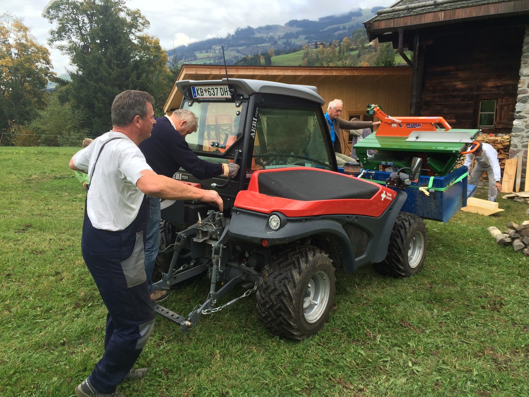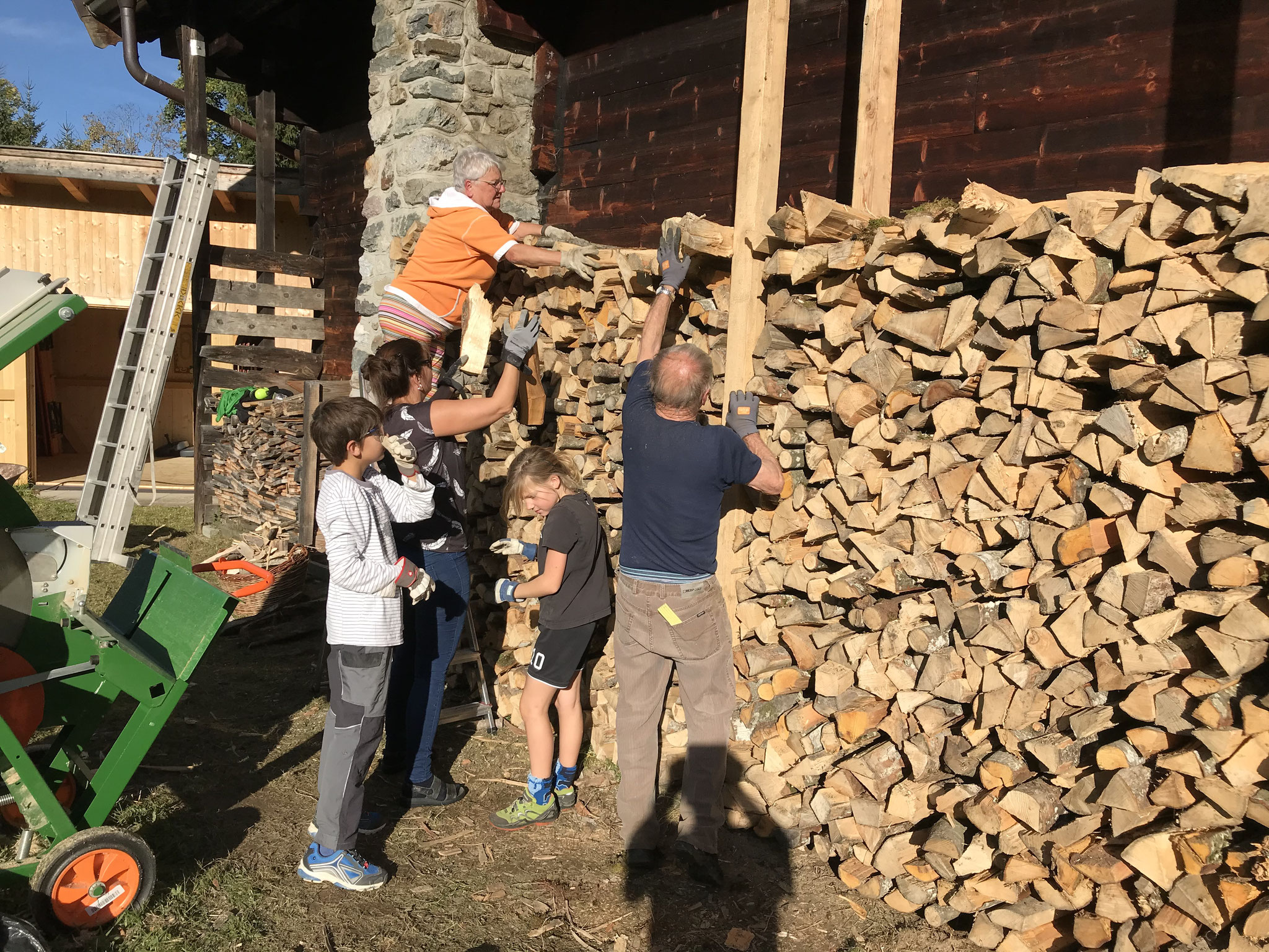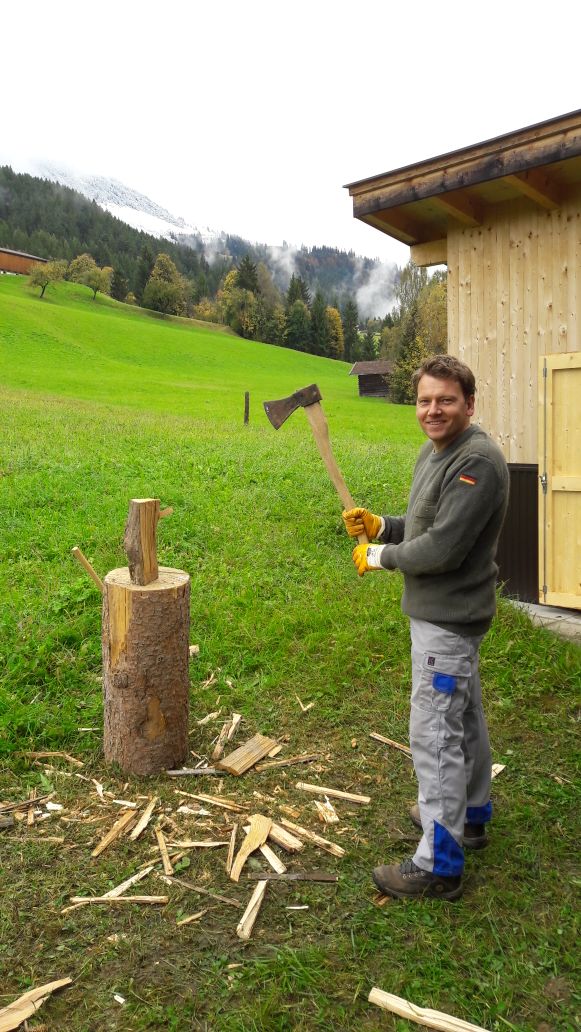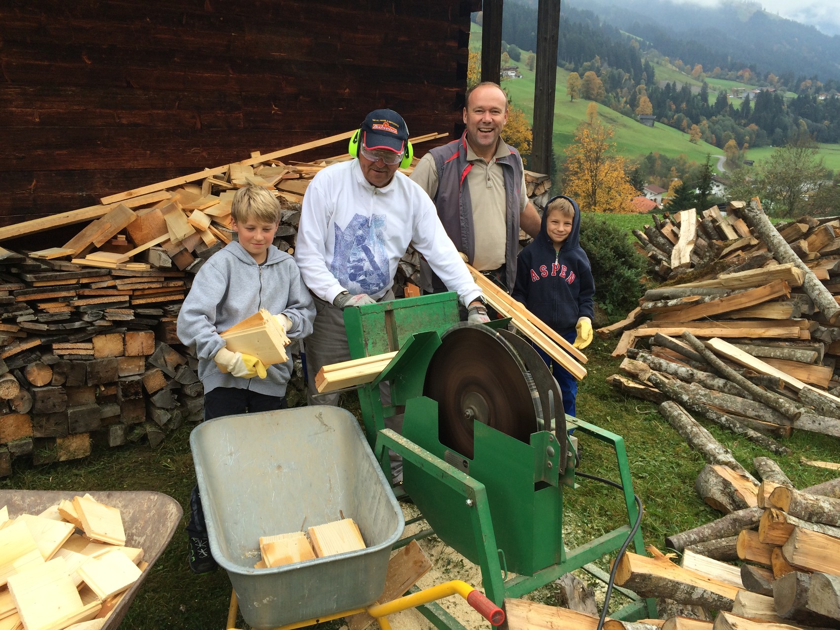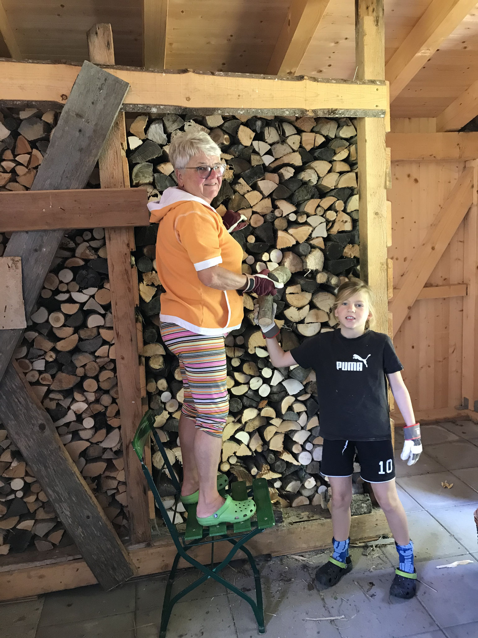 Unsere gute alte Kreissäge gab gleich zu Beginn ihren Geist auf und es musste schnell ein adäquater Ersatz gefunden werden. Hüttenwart, Vorstand und zwei weitere krisenerprobte Mitglieder begaben sich sofort in Richtung Tal um eine neue Säge zu besorgen. Keine zwei Stunden später war der CAS Besitzer einer neuen "EasyCut" Wipp-Säge und es konnte sogleich weitergearbeitet werden. Gegen Abend waren knapp 10 Ster Holz gemacht und es gab in der auf Hochglanz gewienerten Hütte ein deftiges Mahl für alle Helfer.