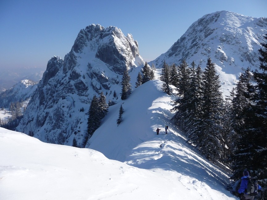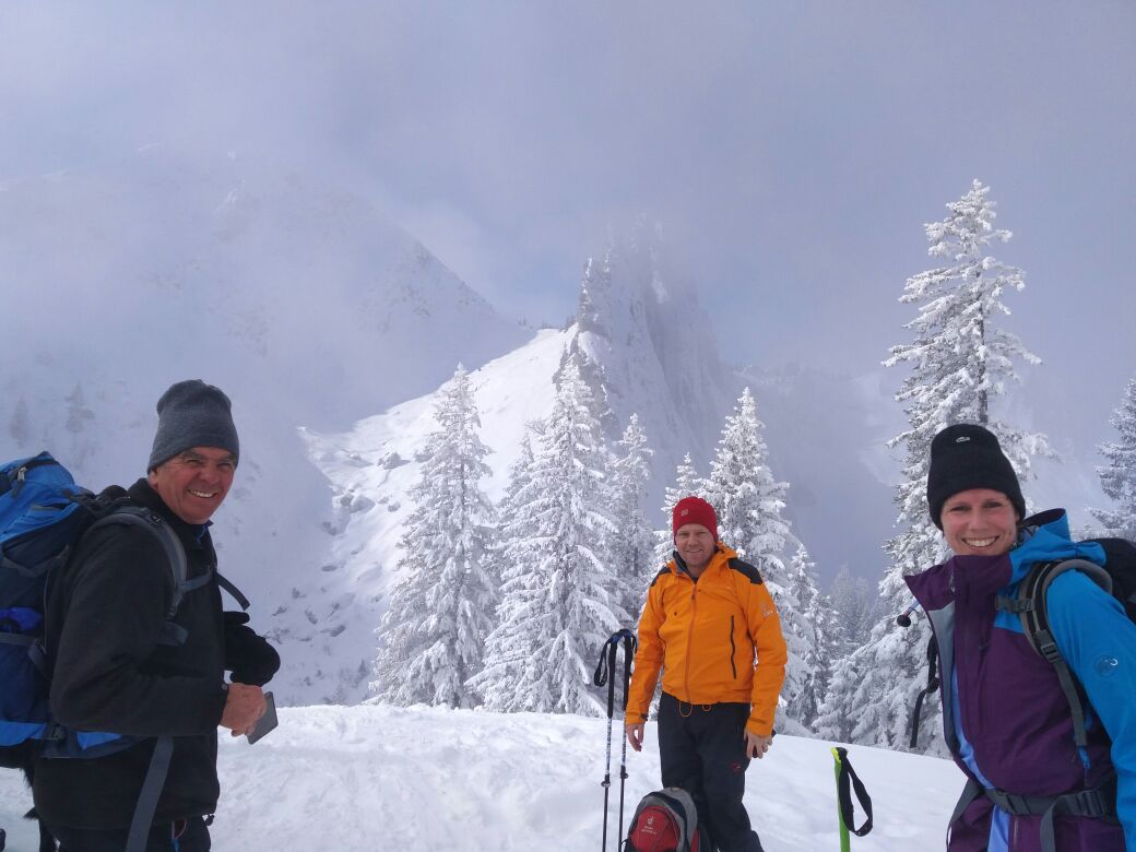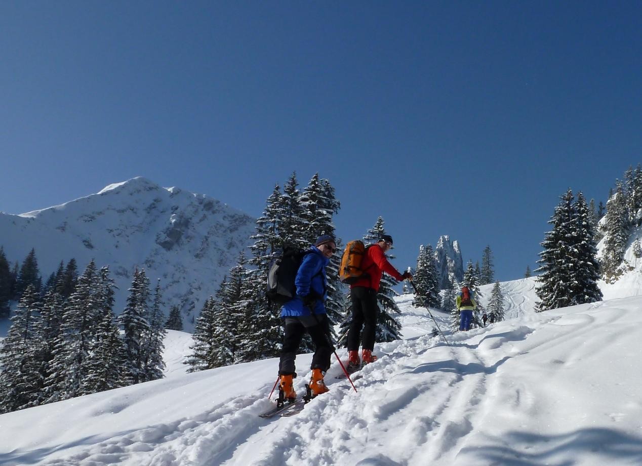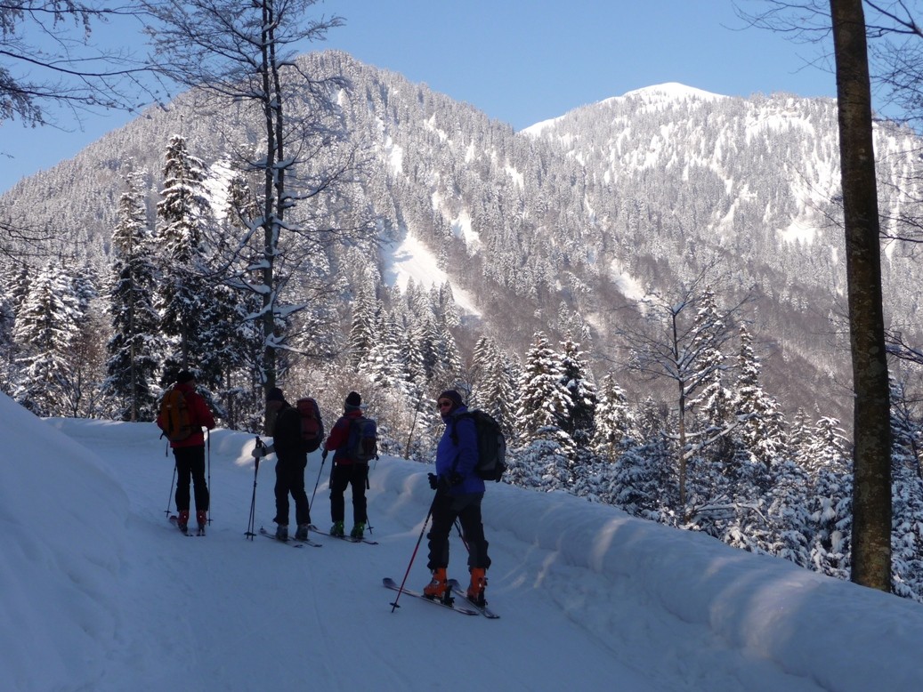 5 Caserer und ein Gast waren um den Blankenstein bei super Verhältnissen unterwegs. Der Plankenstein (auch Blankenstein genannt) ist ein Touren- und Kletterberg in den Bayerischen Voralpen. Er liegt zwischen Wallberg und Risserkogel und ist 1768 m hoch. Die Anfahrt erfolgt von der Mautstraße von Rottach-Egern am Tegernsee bis zum Parkplatz (Kistenwinterstube/Hufnagelstube) kurz vor der Moni-Alm (Länge ca. 7 km), von dort rechterhand einer Forststraße folgend über die Siebli-Alm und Riederecksattel (1500 m) in ca. 1,5 h zum Plankenstein. Weitere Anstiegsmöglichkeiten aus dieser Richtung bieten die Wege über die Röthenstein Alm und die Plankenstein Alm.
