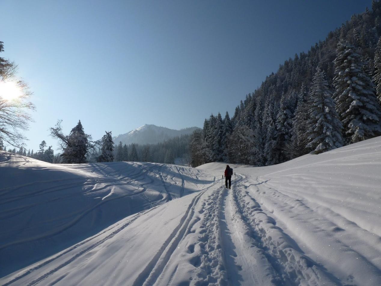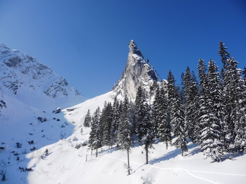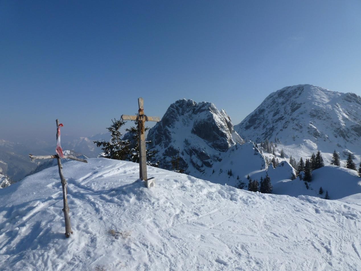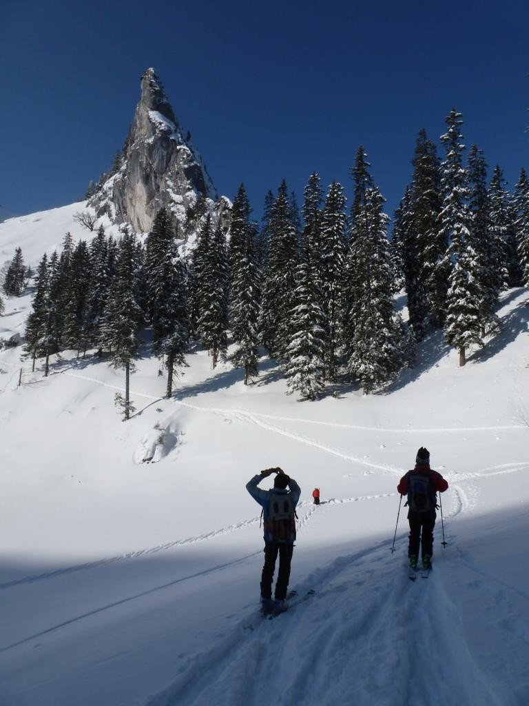 5 Caserer und ein Gast waren um den Blankenstein bei super Verhältnissen unterwegs. Der Plankenstein (auch Blankenstein genannt) ist ein Touren- und Kletterberg in den Bayerischen Voralpen. Er liegt zwischen Wallberg und Risserkogel und ist 1768 m hoch. Die Anfahrt erfolgt von der Mautstraße von Rottach-Egern am Tegernsee bis zum Parkplatz (Kistenwinterstube/Hufnagelstube) kurz vor der Moni-Alm (Länge ca. 7 km), von dort rechterhand einer Forststraße folgend über die Siebli-Alm und Riederecksattel (1500 m) in ca. 1,5 h zum Plankenstein. Weitere Anstiegsmöglichkeiten aus dieser Richtung bieten die Wege über die Röthenstein Alm und die Plankenstein Alm.