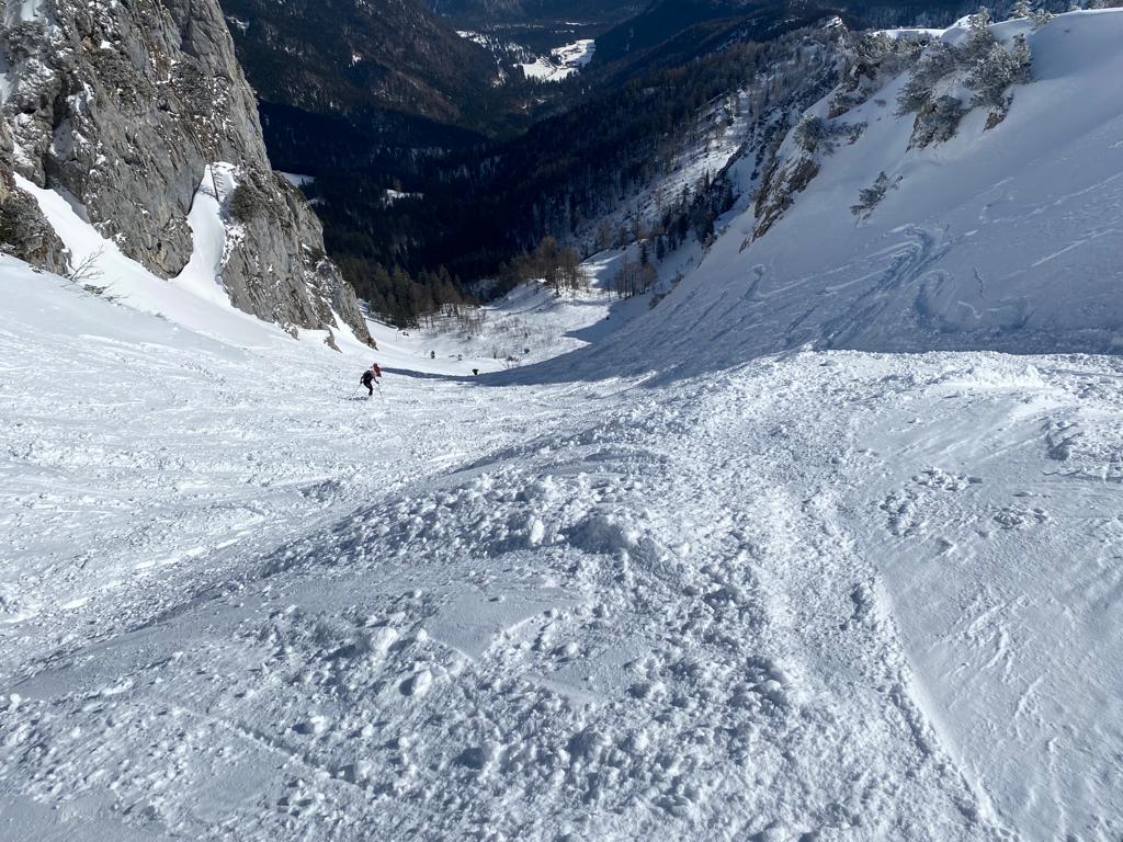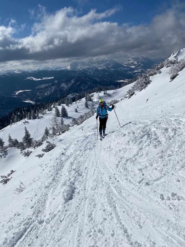Den Reiz der Skitour zur Hörndlwand macht besonders das nordostseitige, steile Kar aus. Bei strahlendem Sonnenschein und besten Schneeverhältnissen mit etwas Neuschnee machten wir eine herrliche Skitour und wurden mit einer Pulverschnee-Genussabfahrt belohnt.